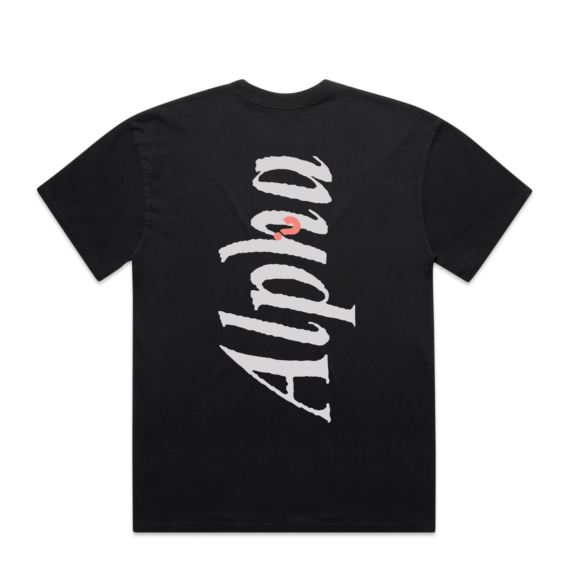 Versatile unisex t-shirt made to last with heavy weight 100% carded cotton. A relaxed fit with dropped shoulders, wide neck ribbing, side seams, shoulder to shoulder tape, and double needle hems ensure street-ready durability and comfort. Featuring a bold print on the back and a smaller print on the front.